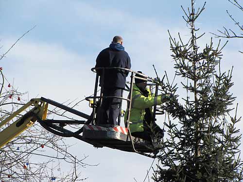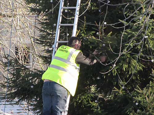 There is now a plug on the post for our power supply to the tree lights, so all is looking good for the tree switch on. I still can't see the fence for it yet though. I do hope they are wrong with the weather forecast, two degrees and snow is not what we need, when we are putting up the lights, or when the market is on. Still; come all, and see the entertainment, you can even help if you need to get warmed up! |