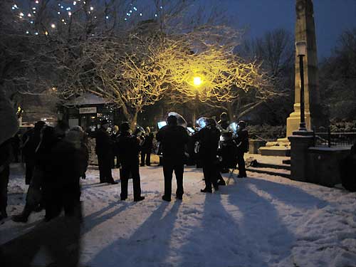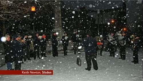 Did anyone else see the photo of silden town band playing at the tree lights turn on, which was shown on look north tonight? It looked great with the snow falling all around them. |