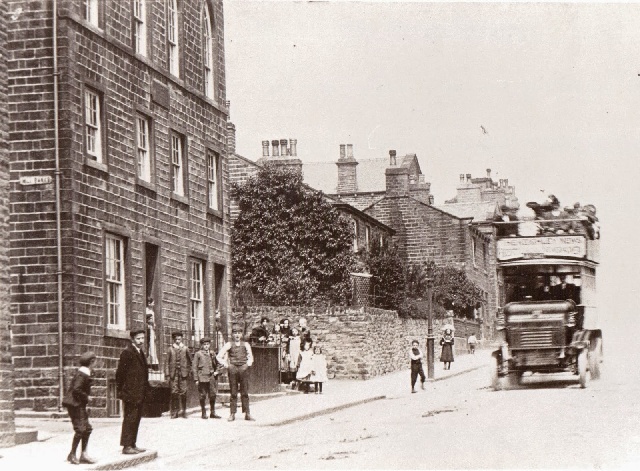 Above: Mill Banks. The single-storey building with the red door was once a nail-making forge and is one of only three known surviving structures from the local industry. The other two are in Stirling Street. The first mention of nail-making in Silsden was in 1761. At its peak in the mid-19th century, the industry employed more than 100 people. But as a domestic or semi-domestic enterprise it was overtaken by mass-production methods and ceased in Silsden in 1919. The vacant land in front of Mill Banks was once the site of the Oddfellows Hall (pictured below on the left).