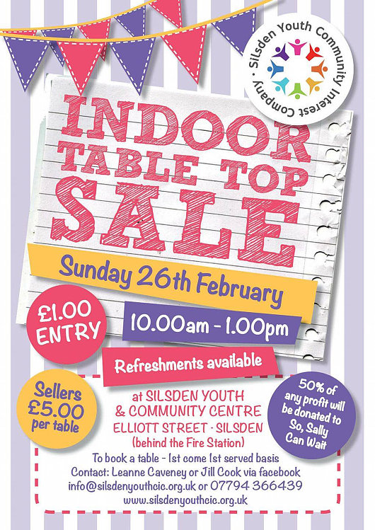 DON'T FORGET THE SUBJECT IS >>>>>>>> Forums Home > EVENTS - ANNOUNCEMENTS - MEETINGS > Table Top Sale at Silsden Youth & Community Centre |