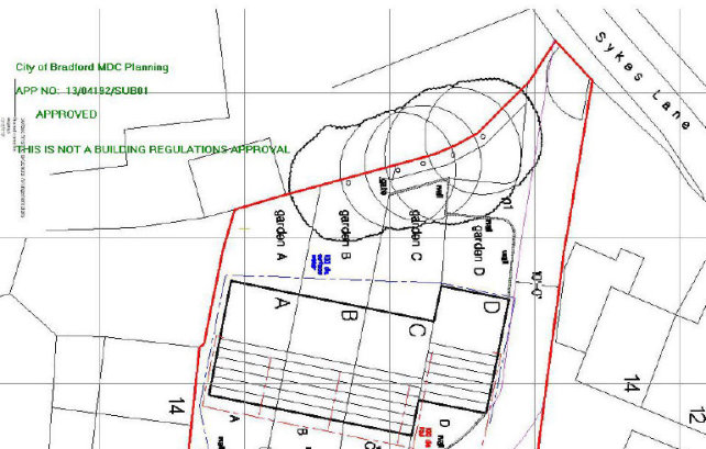 This site was approved for the houses shown on the plans but the tree were not shown as being a problem. In reality the canopies were much larger, and the trees have TPOs on them. ![]() The full document news.silsden.net/wp-content/uploads/2015/08/13_04192_SUB01-APPROVED_PROPOSED_SITE_LAYOUT-4177017.pdf The developers have now put in an application to cut the trees down as they are suffering from "deceased" and surprise, surprise, construction related distress. ![]() The full document news.silsden.net/wp-content/uploads/2015/08/15_03071_CPN-IDENTIFICATION_TREE_PLAN-4276380.pdf .... and the reality ![]() REFERENCES Bradford planning www.planning4bradford.com/online-applications/ House approval, search for - 13/04192/FUL Trees, search for - 15/03071/CPN |