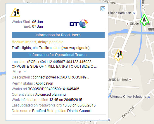 quoteAccording to "Roadworks.org" BT are setting up traffic lights this weekend 6th & 7th on Keighley Road. Yippee !! Nothing on here www.bradford.gov.uk/bmdc/transport_and_infrastructure/roadworks |
