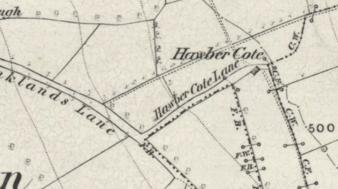 As you can see from the map, Hawber Cote Lane was open to the barn and led to the footpath which goes to the east of the barn, shown on the current footpath map. These days Hawber Cote Lane, on from where the hard surface ends, it is overgrown and there is barbed wire across.