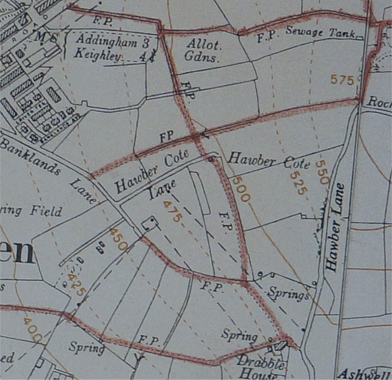 It clearly shows Hawber Cote Lane extending to the barn and joining up with the footpath which runs from Drabble Farm to the top of the allotments.
