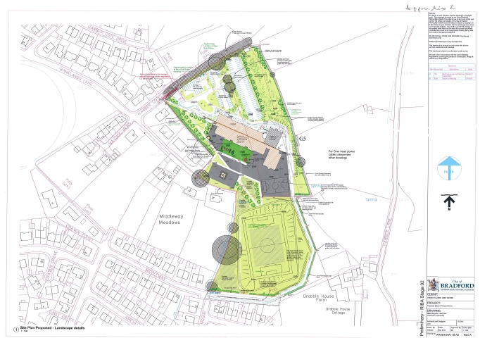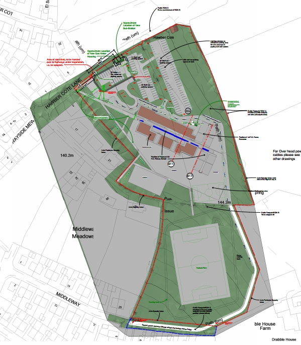 If you look at a better quality image on the planning app the access via middleway is a pedestrian path only, sharing the existing path that the farm owns. The only vehicle access route is via hawber cote drive with a turning circle within the school grounds an a turning head for buses. The reality is thought that parents will drive up middleway or more likely aireville mount to drop kids at this entrance unless prevented. Anyone east or south of clog bridge is not going to drive up to banklands For those concerned about this location, we could do with a couple of savvy people to read the plans indetail and highlight any issues or omissions that can be included in opposition comments. The traffic impact mentioned above on middleway / aireville is one example. Another quesion is regarding the red hatched area on hawber cote drive which is tagged as unadopted. If this the case, who owns it now and could itbe used as ransom strip to prevent this as an access route? I will say as a resident of aireville i dont have at this point any objection to the school design as such, my concerns are about the viability of access to this site. |