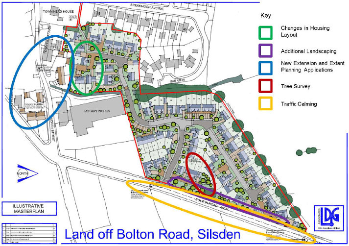 Raver is totally confused. This housing is at the top of Bolton Road and starts just past Tannery Corner. The entrance to the site will be where the traffic island is at the moment. The plans move the traffic island further up towards Cringles IE the 30phh??? restriction will be moved further out. Next time you drive past the traffic island going towards Cringles look at your speed and tell me you are doing 30mph because that was what is in the report for the traffic speed going up the hill. As far as a bypass is concerned dream on. |
