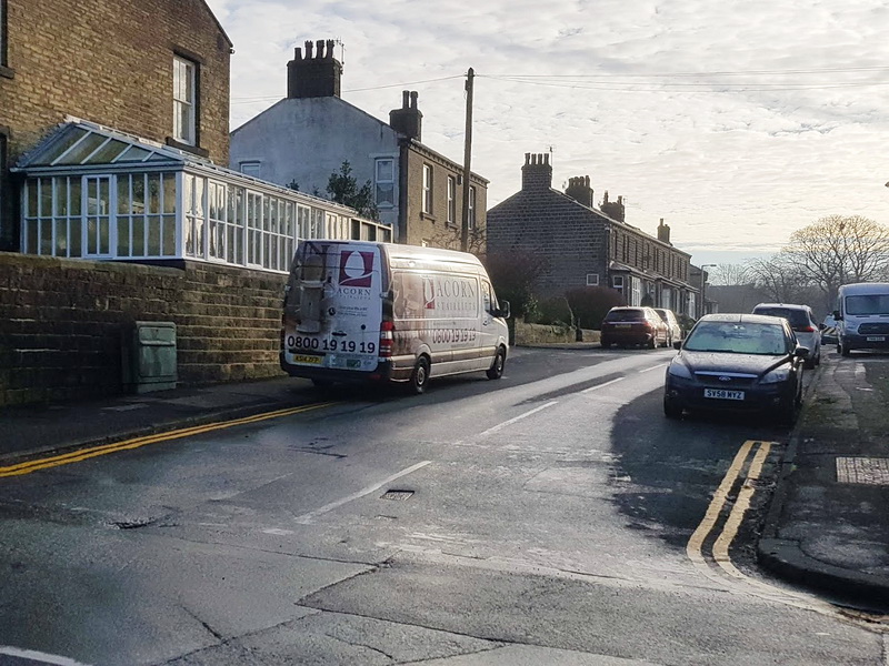 The van is parked ON the pavement AND over the recently painted yellow lines. Yellow lines which still allow the entrance into Dale View from Bolton Road a single track road - a complete waste of time AND it's still a very dangerous junction