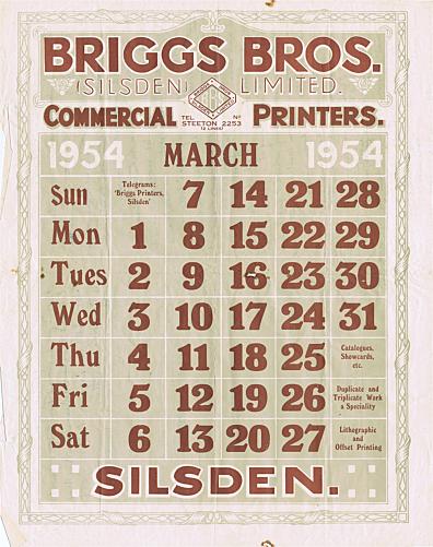 Briggs Bros were in Silsden for over 100 years. Business started by local lad Fred Briggs in a little room at his Keighley Road home, with two simple printing presses. Became successful, so moved to much larger premises in Elliott Street and was joined in the business by brother Clifford. Clifford became the better known: he performed in concerts and owned Silsden's only cinema, the Picture Palace, for most of its life, where he painted the walls with palm trees. Business passed to other generations of the family but closed in Silsden in the late 1990s. Workers complained that too much focus had been given to printing bingo tickets in the final years, and other orders had not been chased. |