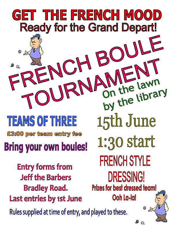 ![]() More information and entry form letour2014.silsden.net/publicity/silsden-boules-competition-on-sun-15th-june/ ![]() |