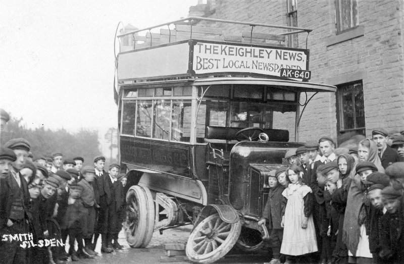 Picture was taken 1911 in front of Harry Price's shop Kirkgate The bus got out of control coming over the canal bridge and crashed in to the shop See Neil Cathey book history of old cobbydale |