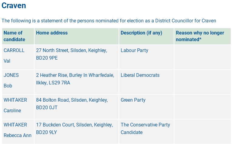 Congratulations to Rebecca Whitaker, at last we have a Ward Councillor who is also on Silsden Town Council. |