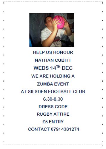 Posted on behalf of Yvonne: We have been allowed to use Silsden football club for the night and am so grateful to them. I have attached a copy of the poster that we are using to advertise the event. ![]() Download the poster: www.silsden.net/forum/forumpics/NathanCubit.pdf |