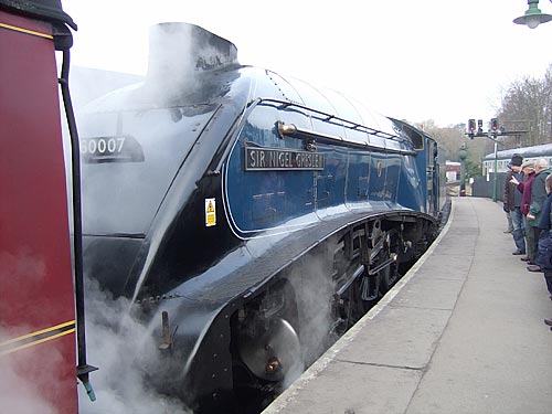 Peter Don't forget the Mallard, same class as Sir Nigel, but it hold the World speed record for a steam loco; of 126MPH, can be seen for free at the National Railway Museum in York. |
