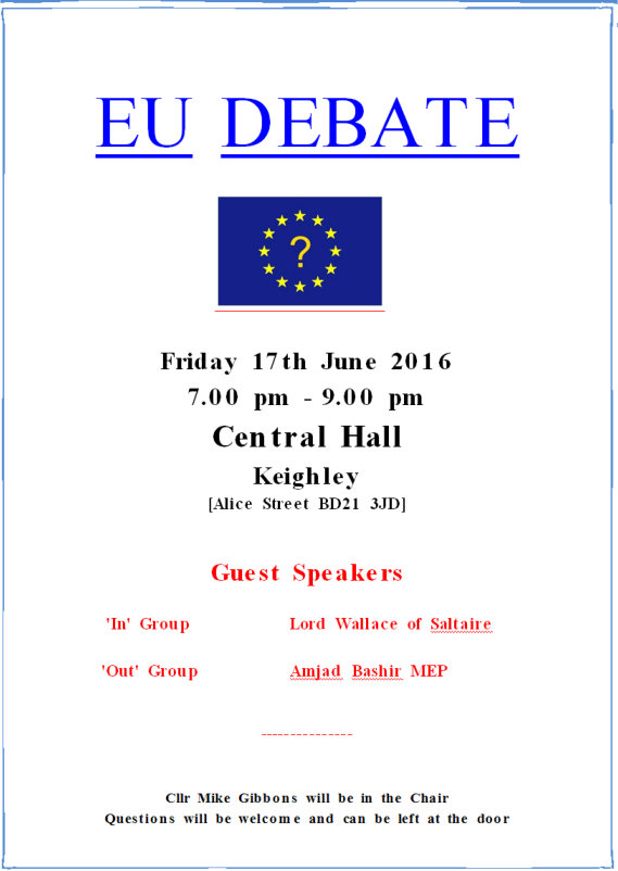 Topic : EU DEBATE - Friday 17 June 7pm - Keighley |