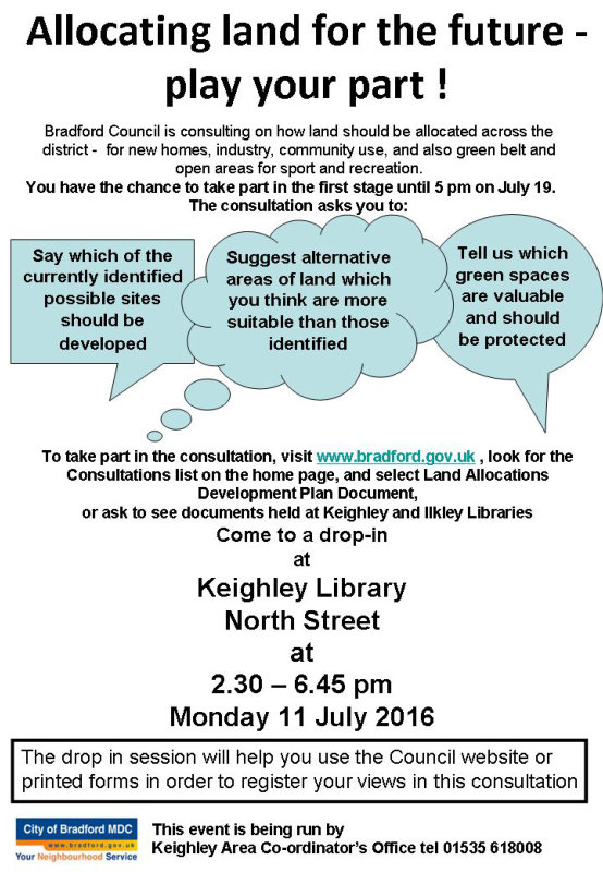 Bradford council are consulting on a new local plan, it looks as if Silsden will double in size. The plan shows housing sites all over from just below the res to Brunthwaite bridge, down to the river and Jacksons fields to the west. |