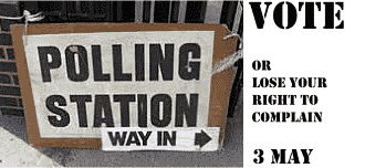 Just been and voted (11:00). The hall was pretty busy, although not many people in the booths. Pity there wasn't a vote to go independent from BMDC. Just read the quarterly newsletter for the allotments, where they say money is available for maintenance of allotments sites. Are they extracting the urine?? In the last 6 years, we have had a gate fitted and the occasional visit! We've had no water for over a year! Site management, where?? |
