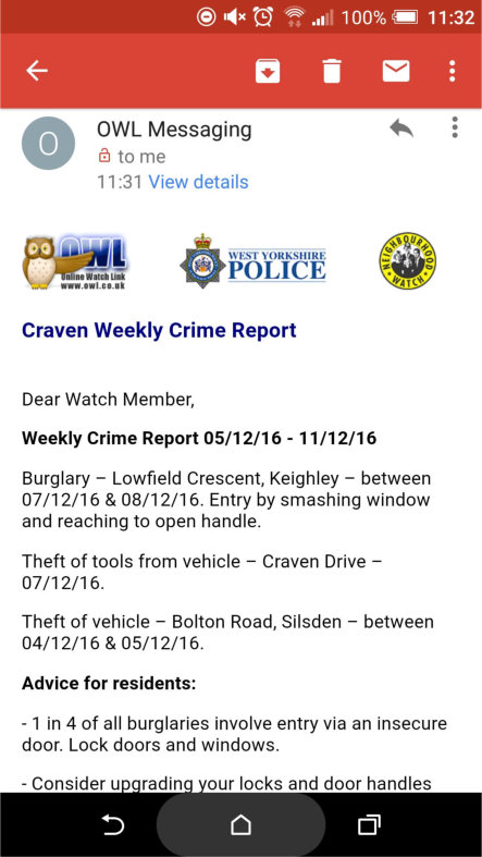2 in steeton and 3 more in silsden over the last few days a m/bike and 2 thefts through UNLOCKED doors,ode to the song when will they ever learn???!!!!!' '); |